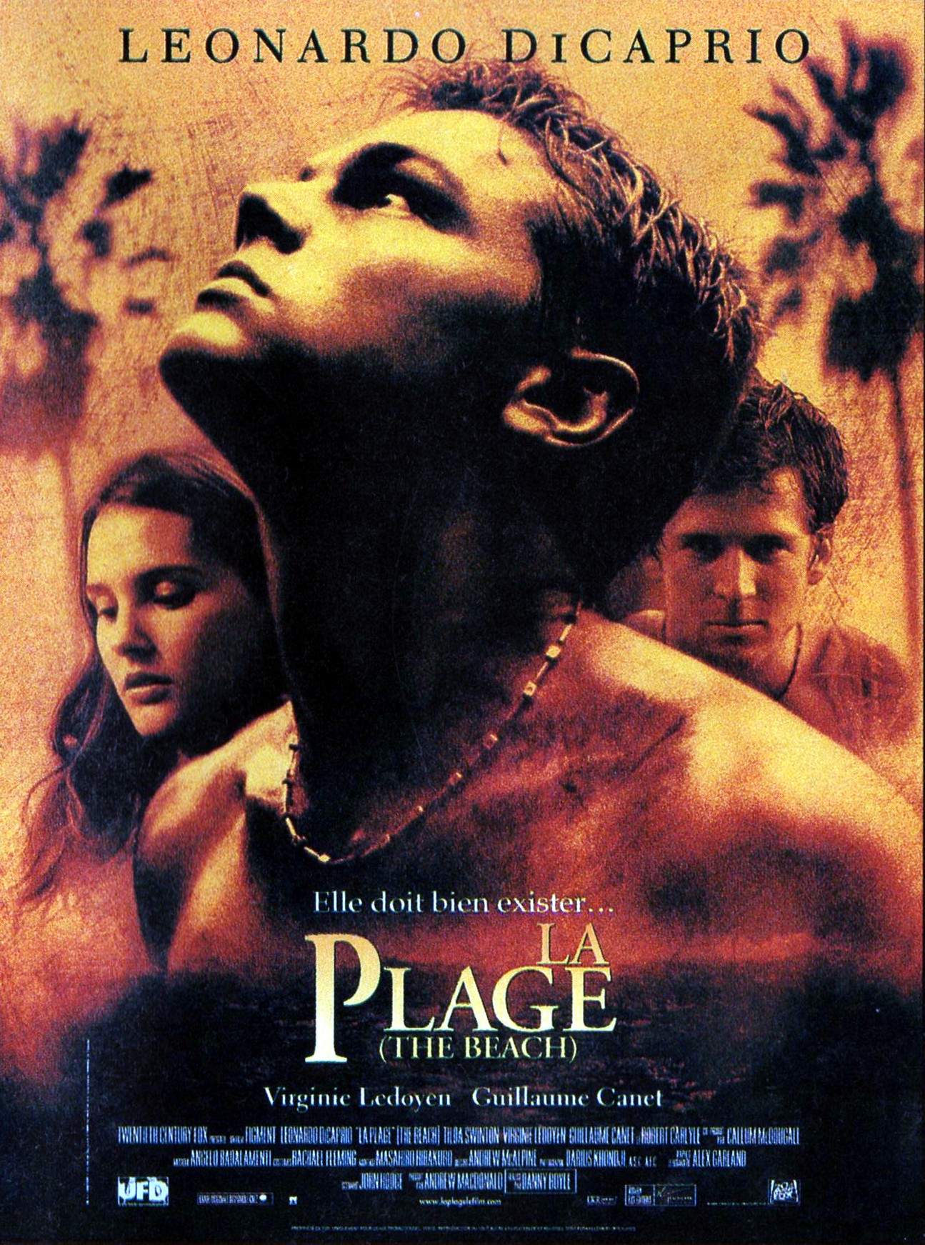 Richard(Leonardo DiCaprio)是位酷爱网上冲浪和冒险的美国年轻人,一天,他来到泰国曼谷,欲找寻在网络上得知的人间天堂海滩。在投宿的廉价旅馆里,他遇到法国女孩Franoise(Virginie Ledoyen)和其男友,三人成了朋友,不久Richard爱上Franoise。Richard从诡异的光头佬那里得到一些听来奇怪的秘密,随后光头佬留下一张神秘地图意外死去,这激起Richard的好奇心,按图索骥一番追踪,他确信海滩的确存在,开始说服Franoise和其男友同他一起去找寻海滩,并复制了一份地图供另外认识的美国朋友前去探险。克服了种种困难,Richard三人来到疑似海滩乐园的地方,可是呈现在他们眼前的只有大片大片的大麻地和持枪的泰国农人,逃命之际,他们终于走进梦想中的天堂,那里的人们在Sal(Tilda Swinton)的带领下,过着无忧单纯的近似原始社会的生活。Richard三人的到来令泰国农人对Sal发出警告:海滩不准再添人。这句话随后成谶语。收起